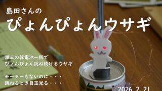単三の乾電池一個でぴょんぴょん跳ね続けるウサギ モーターもないのに・・・ 跳ねるとき目玉光る・・・ なんで? なんで?(2026.2.22 島田祥生) https://tankenkobo.com/wp/wp-conte […]